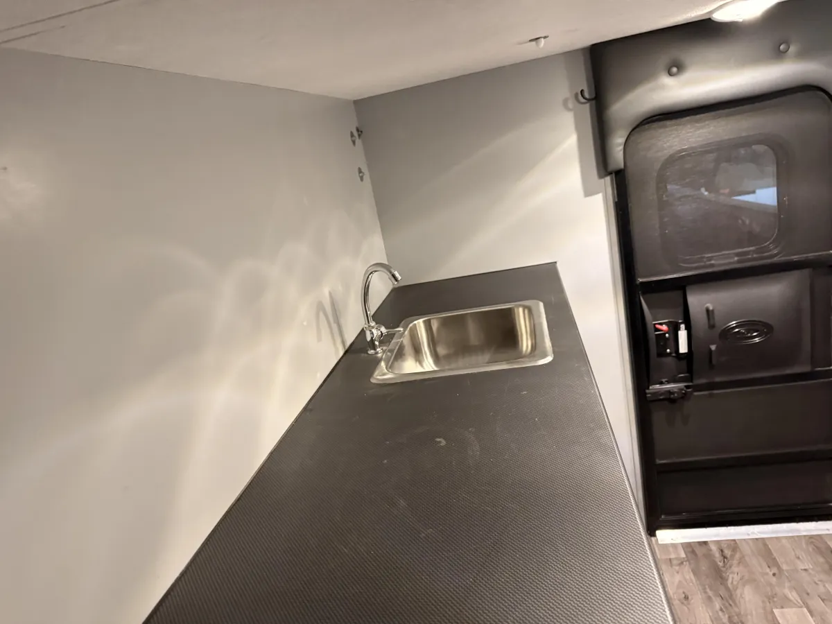 10gal Water Tank, Interior Sink + Faucet, Exterior Spray Port Connection, 15Ft Coil Hose with Hand Sprayer & Water Fill Location